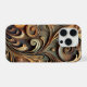 An opulent decorative artwork featuring intricate baroque/rococo-style scrollwork rendered in raised relief. Interlacing volutes, acanthus-inspired curves, and circular medallions create a symmetrical, flowing composition that feels both dynamic and refined. Warm metallic tones—gold, bronze, and copper—mingle with earthy browns, sage green, dusty blue, and cream highlights. Dramatic lighting from the upper center casts deep shadows along the dimensional edges, emphasizing the sculptural quality and evoking a luxurious, classical ambiance.