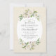 Barato personalizado imprimido Convites da Primeira Comunhão com uma elegante borda floral pintada em sotaques de marfim, folha verde e folha de ouro falso. Personalize o modelo com os detalhes do evento ou use as ferramentas design para personalizar o texto, escolha qualquer cor de fundo e edite as fontes para criar seu próprio design de convite exclusivo. O verso apresenta um fundo verde bonito ou usa o espaço para adicionar texto ou fotos, se necessário. Este lindo design floral neutro é perfeito para qualquer estação.