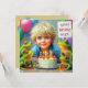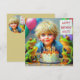 Um menino bonitinho com uma aparência vintage, comemorando seu aniversário. As saudações no cartão são "Feliz Aniversário" e "Giles". Na parte traseira do cartão há uma pequena versão adesiva da imagem frontal e muito espaço para escrever uma mensagem. Feito com o auxílio do AI Bing (Copilot).