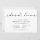 Nosso elegante e moderno janto de ensaio de casamento ou convites de festas de coquetel em preto-e-branco com a característica "janto de ensaio" no topo em um texto escrito à mão. Personalize com seu ensaio de cerimônia e ensaie detalhes de janto abaixo. Inclui espaço para a época do ensaio e endereço da igreja ou do local. Cartões em preto sólido. Um design de chic preto e branco para casais modernos e eventos elegantes.