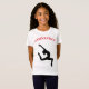 Gymnastics T-Shirt , Gymnast Leap Silhouette, inscrição vermelha com opção de nome. Personalize esta ginástica com o nome do seu ginasta, ou coloque o nome do seu clube de ginástica para ter e vender no seu ginásio (excelente para encontros, angariadores de fundos ou no seu protesto) - Se você preferir não ter nome no verso faça o vazio da caixa de personalização.
