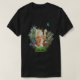 Um gatinho de gengibre entre muitas flores tocando no final do verão indo para a primavera perseguição com borboleta azul