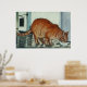 Um impressão ou poster de uma pintura pastel original feita por Judy Adamson de um gengibre que aproveita a sua refeição noturna.