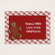 Adicione um toque especial aos seus guloseimas cozidos com estas doces etiquetas de presentes! Um homem sorridente de pão de gengibre está no fundo Holiday Red, com uma fronteira vermelha e branca de xadrez.