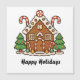 Holiday Gingerbread house magnet. Fun unique design with christmas trees and candy canes. Great card magnet for your fridge or gifting as a stocking stuffer. Happy Holiday greeting can be customized.