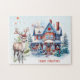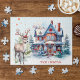 Quebra-cabeça com um gengibre giro como a casa com pomba branca e veado no estilo aquarela. Excelente de Natal!