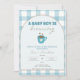 Tema do chá de fraldas "Um Menino está Criando", de gingham azul bonito.