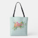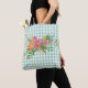 Por todo o saco de impressão, feito em um padrão verificado de gingham branco e verde-menta, com gráficos de aquarela de um buquê floral colorido de pedras. Personalize para adicionar seu próprio texto a este saco bonito.