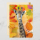 Foto de uma girafa Bobo com algumas ilustrações em folha de outono reunidas para fazer uma bela e única carta