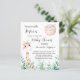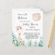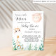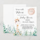 Para um chá de fraldas, neutro em termos de gênero. Um fundo branco. Uma girafa de bebê, verde de eucalipto, samambaias e uma lua sorridente. Personalize e adicione o nome da futura mãe e os detalhes da festa. Texto: Estamos sobre a Lua, o Chá de fraldas e o nome são escritos com um script de estilo manuscrito