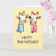 Cartão saudoso, manuscrito, com a imagem de duas girafas do pescoço, com pelo branco e marcas de salto castanho, vestindo os cachecóis (cachecol azul na girafa esquerda e cachecol rosa na girafa direita) e uma girafa enfiando a língua. "Feliz Aniversário", manuscrito em letras maiúsculas abaixo.