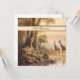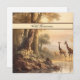 Pintura botânica vinda de três girafas por um rio na selva durante o pôr do sol