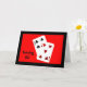 Seis dos clubes e uns cinco dos corações, fotografado contra um fundo vermelho brilhante, são o assunto de meu "girar 65 são uma grande coisa!" cartão de aniversário.