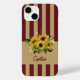 Digite seu nome ou iniciais, ou o nome do destinatário, na seção Personalizada. Estes maravilhosos girassóis de Verão tardios, lançados com outras flores e folhas, são belos lembretes do Verão tardio. Parecem elegantes em relação a um fundo de burgôs e listras douradas, que se parece um pouco com papel de parede numa rico ou biblioteca. A combinação de listras e flores dá a esta capa de telefone de célula uma aparência única de verão, independentemente da estação.