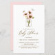 Convide convidados para o seu chá de fraldas com este convite personalizável. Apresenta girassóis cor-de-rosa num jarro de mason com borboletas. Personalize este convite rápido adicionando os detalhes do evento. Este convite para chá de fraldas de girassol é perfeito para chás de verão e outono.