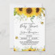 Convite temático para chás de fraldas, neutro do ponto de vista do gênero, moderno, com vários arranjos florais de girassol e algumas abelhas bonitinhas de aquarela.