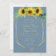 Girassóis e convite de casamento azul
