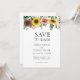 Mande o nosso belo casamento guardar os cartões de data para amigos e familiares para os convidar para a sua celebração de casamento. Apresentando uma cascata aquosa de girassóis, rosas e verde. Personalize com seu texto. Convites de casamento correspondentes, placas RSVP, placas de detalhes e outros itens também disponíveis no compro Adore Paper Co.