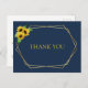 Cartões de agradecimentos moderno e romântico com girassóis de cor d'água sobre fundo azul marinho e forma geométrica falsa de ouro.