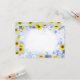 Os girassóis e o cartão de mesa de casamento azul-claro podem ser usados como cartão de lugar ou sinal. Flores silvestres vibrantes são versáteis para paletas azuis poeirentas, azuis-céu, douradas e amarelas. Altere facilmente o tamanho e o tipo de papel para colocar cartões de nome ou cartazes.