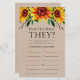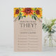 Esta linda folha de jogo de chuveiro de noiva de girassóis rústicos Quantos Anos Eles Tinham? é elegante e encantadora - perfeita para qualquer casamento de jardim, botânico, rústico, romântico, floral, formal ou vintage. Sua combinação requintada de girassóis amarelos de várias tonalidades e folhagens delicadas é fluída, delicada e bonita. Este jogo divertido e fácil certamente trará muitas risadas para qualquer chuveiro de noiva! Peça a familiares e amigos que lhe enviem fotos da noiva e do noivo em diferentes idades e as imprimam. Numere-as e coloque-as perto destas folhas de jogo. Simplesmente dê uma folha a cada convidado (não se esqueça das canetas) e deixe a competição começar! Você ficará surpreso com quantas pessoas realmente sabem as idades da noiva e do noivo. Em segundos você pode ver como sua