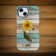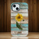 Este iphone do jardim do país e o caso da Samsung apresentam um girassol ouro contra madeira verde e marrom falso-curada. Esta encantadora design de bô mostra suas iniciais em marrom na parte inferior. Digite-os na caixa Personalizar para substituir o espaço reservado.