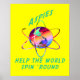 "Aspies ajudam o mundo a girar em volta" em texto de estilo cômico azul-esverdeado com um globo virado para baixo.