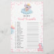 Este adorável jogo de chá de palavras de bebê apresenta um urso koala menina flutuando em uma nuvem com um roteiro elegante e texto moderno. O dorso apresenta um urso koala segurando um balão. CHAVE DE RESPOSTA: 1. Fralda, 2. Berço, 3. Bovinos, 4. Garrafa, 5. Pacificador, 6. Gravidez, 7. Fórmula 8. Teddy Bear, 9. Alta Presidente, 10. Patrulha, 11. Baby Monitor, 12. Rattle, 13. Pó De Bebê, 14. Telefone celular, 15. Bomba de Mama, 16. Cobertura, 17. Assento Do Carro, 18. Chorando, 19. Enfermeiro, 20. Creme de fralda
