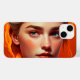 A girl with blue eyes on an orange background, dark black and crimson, photorealistic fantasies, personal iconography, detailed character design, shiny/glossy