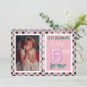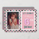 Um convite de festas de aniversário super fofo com bolinhas e listras bonito. Adicione foto e nome à frente. Personalização linha a linha no verso.