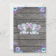 Teal Roxo Muito fofo/Elefantes Gêmeos Turquesas/Chá de fraldas de amendoim com flores a aquarelas e fundo de madeira. Todos os campos são editáveis. Adequado para aniversário ou Chás de fraldas, chá de Fralda, gole e veja.