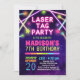 Convite de aniversário de etiqueta laser de neon com cores brilhantes do arco-íris para raparigas ou rapazes.