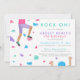 Convite de aniversário de Escalada de Rock da Rapariga. O muro de subida com porcas coloridas está em textura de aquarela divertida.