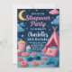 Torne o aniversário do seu filho especial com este adorável Convite de aniversário Sleepover, perfeito para festas de pijama e comemorações do pijama! Apresentando ilustrações bonitas sobre o tema de dormir, cores pastéis macios e tipografia divertida, este convite vertical de 5 x 7" é ideal para as adormecidas de aniversário das raparigas. Totalmente personalizável com o nome do seu filho, os detalhes da festa e as informações de RSVP. Impresso em cartolina de qualidade superior com envelopes opcionais, é uma maneira encantadora de convidar convidados para uma noite de diversão, jogos e risadeiras. Excelente para crianças de 6 a 12 anos!