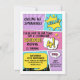 O 4.º convite para o aniversário desta menina apresenta uma silhueta de uma cidade, bolhas de fala, estrelas e várias palavras em um fundo rosa, azul e roxo. Eu queria criar alguns convites de super-heróis para a loja expandir a coleção. Eu criei este design há algumas horas, no entanto, se você precisar de um número que não está disponível, entre em contato comigo para um novo modelo sem custo extra. A super-garota do 4º aniversário desta garota, o convite de super-heróis está pronto para ser personalizado e é adequado para a festa de aniversário de super-heróis de uma garota.