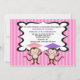 Quem está graduando o jardim de infância ou o pré-escolar??? Seus macacos pequenos!! O convite perfeito para meninas gêmeas! Este adorável convida tem um fundo listrado cor-de-rosa brilhante. Há um Tag center branco esboçado no preto com os pontos brancos pequenos nele. Há um macaco adorável com um boné de formatura cor-de-rosa em sua cabeça e ao lado dela está um outro macaco que veste um boné roxo bonito demasiado. Personalize com informação do partido e você está pronto para ir. Verifique para fora nossos muitos outros design e cores em nossa loja. ©Riefka