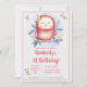 Um pássaro de aquarela bonitinho com texto cor-de-rosa decora este convite de aniversário.