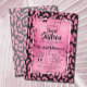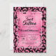 A impressão elegante rosa-quente e leopardo-preto está sobreposta com uma folha fina rosa-quente e os seus 16 detalhes de festa de aniversário em letra chic. COORDENANDO itens disponíveis em nossa loja.
