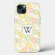 Caso do iPhone 13 com monograma floral pastel feminino. Fácil de personalizar a partir da página do produto.