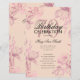 Design de "Programa de Festa de aniversário" elegante com Convênio Floral em Rosa Dourado com texto personalizado.