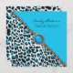 Chic Sweet 16 Birthday Invitation, feito em uma moderna impressão de leopardo azul-turquesa, preto e branco, com gráficos de diamantes brilhantes e sotaques de tom de prata. Personalize o texto negro, para a celebração de 16 anos às suas filhas. Produtos correspondentes disponíveis.