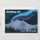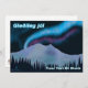 Luzes de norte roxas e azuis brilham sobre montanhas cobertas de neve em uma noite fria no Alasca. O texto islandês que lê "Gleðileg jól" (Feliz Natal) aparece em azul e branco brilhantes. Adicione seu próprio texto adicional.