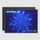 Um enxame de flocos de neve fractais azuis. O texto islandês que lê "Gleðileg jól" (Feliz Natal) aparece em azul e branco brilhantes. Adicione seu próprio texto adicional.