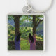 Garotas gêmeas se destacam por trás de duas árvores em uma luva verde-luxuosa entre colinas rochosas, cheias de pequenas fazendas e sebes e muros de pedra e regadas por um riacho espumante que desce em cascata pelas colinas.