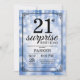 Convite para aniversário de 21 anos surpresa com luzes azuis de cadeia de caracteres com fundo azul brilhante. Aniversário Azul. Aniversário Adulto. Homens ou Mulheres no Dia Convidam. 13 15 16º 18º 20 21 rua 30 40º 50º 80 de 60º 70 de 100º, qualquer idade. Para mais personalização, clique no botão "Personalizar" e use a ferramenta design para modificar este modelo.