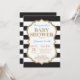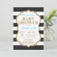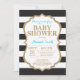 Convite para Chás de fraldas Azul e Dourado. Dourada Glitter. Convite para Chás de fraldas. Black and White Stripes. Para mais personalização, clique no botão "Personalizar" e use nossa ferramenta de design para modificar este modelo.