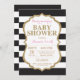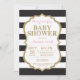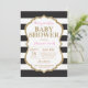 Convite para Chás de fraldas Dourados e negros. Dourada Glitter. Convite para Chás de fraldas. Black and White Stripes. Para mais personalização, clique no botão "Personalizar" e use nossa ferramenta de design para modificar este modelo.