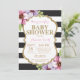 Convite para Chás de fraldas Dourados e negros. Dourada Glitter. Convite para Chás de fraldas. Black and White Stripes with Purple and Pink Floral Flower. Para mais personalização, clique no botão "Personalizar" e use nossa ferramenta de design para modificar este modelo.