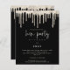 Glitter De Creme No Convite Preto De Fim De Semana. Um alternativo de 4,5 pol x 5,6 pol com preço inferior. Disponível em um STOCK DE CARTÃO SEMI GLOSS 110 lb, que é a opção padrão (recomendada para convites), OU um STOCK DE PAPEL THINNER SATIN FINISH 80 lb (ideal para gabinetes). Os envelopes são opcionais extras e são ligeiramente maiores que o tamanho do cartão.O cabeçalho principal da Festa Hen está em uma tipografia de script de conjunto creme e o resto do texto que você pode personalizar facilmente, assim como seus detalhes de itinerário no sentido inverso.