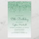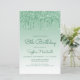 Este convite de aniversário de 18 anos da moda apresenta uma borda cintilante verde cintilante e fundo verde ombre. As palavras "18.º Aniversário" e o nome do convidado de honra aparecem em um roteiro casual de escrita manual verde, com o resto do texto personalizável em fontes verdes sans serif. O mesmo design de gota verde-brilhante aparece no verso.